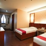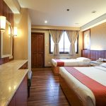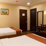 More spacious compared to other trio rooms with a queen-sized bed and a single bed.