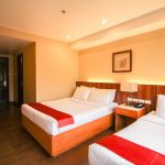 The Executive Room has a queen-sized bed and a single bed located at the best spot of the hotel where you can see the sunset!