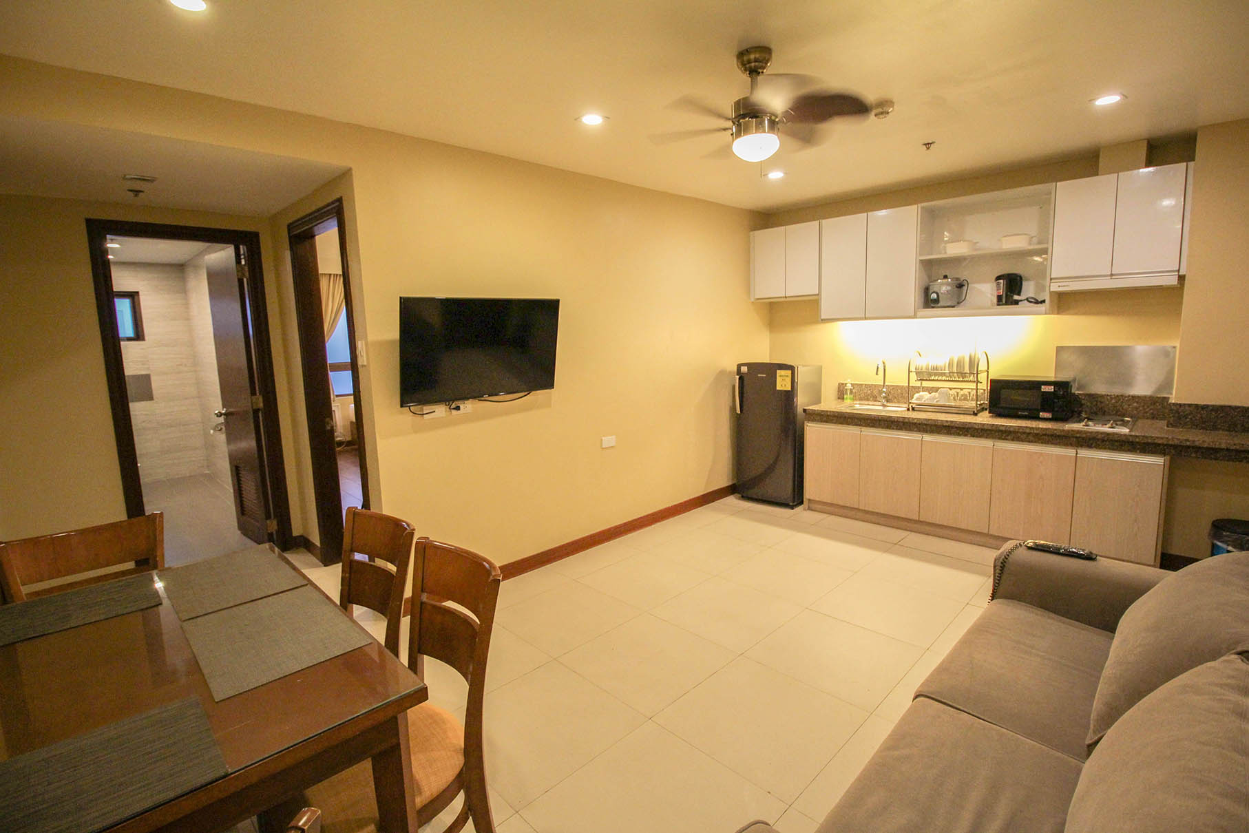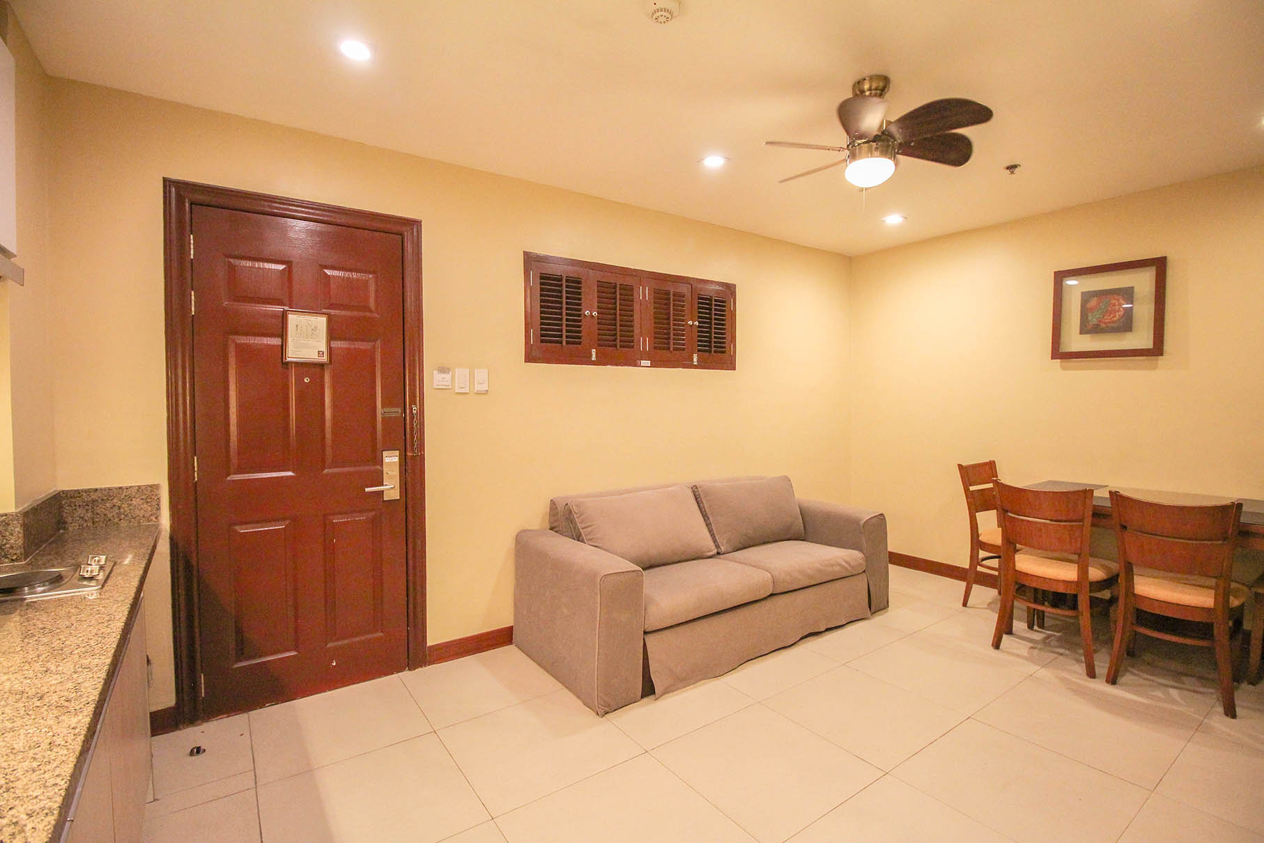 - Amenities: 3-seater Sofa, Air-Conditioning, Free Wi-Fi, Hair Dryer, Perculator, Refrigerator, Safe, Shower, TV